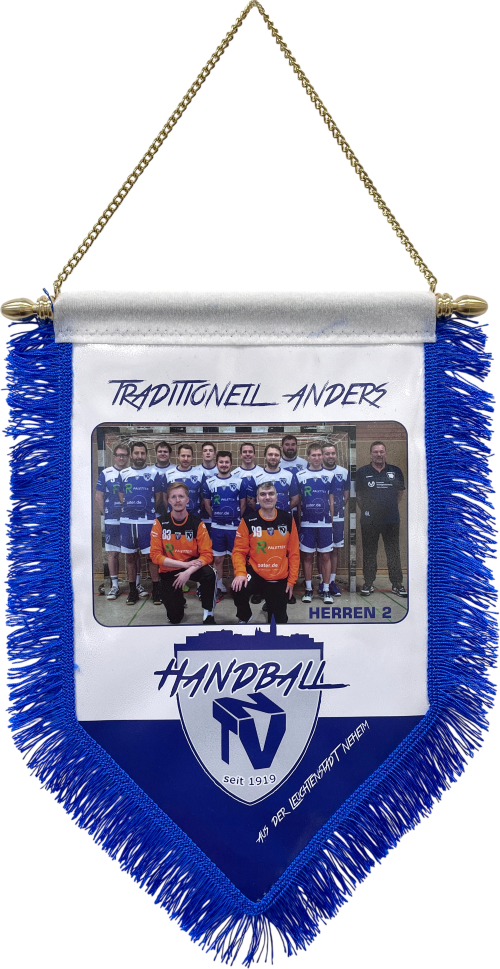 auf 100g Papier bedruckt. (Vorder- und Rückseite können auch - ohne Mehrkosten - unterschiedlich sein). Die Wimpel sind in einer wasserabweisenden Folie eingenäht. Das Abschlussband oben quer ist aus Velour oder Flausch. Bei der Aufhängung können sie zwischen einer ø3mm Kordel oder einer ø5mm Kette wählen, bei der Umnähung der Wimpel zwischen einer ø3mm Kordel oder einer 30mm Franse (hier eine Übersicht unserer wählbaren