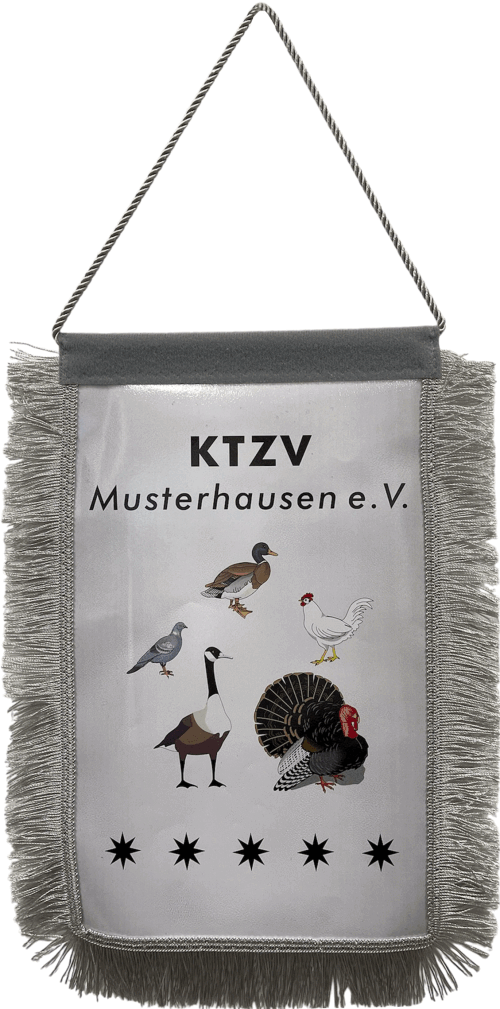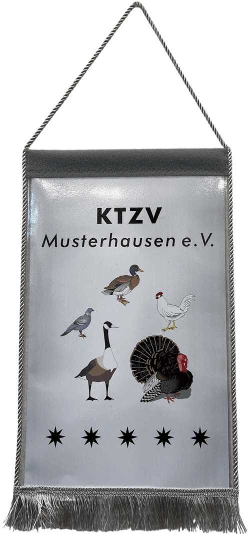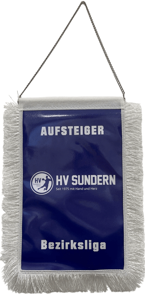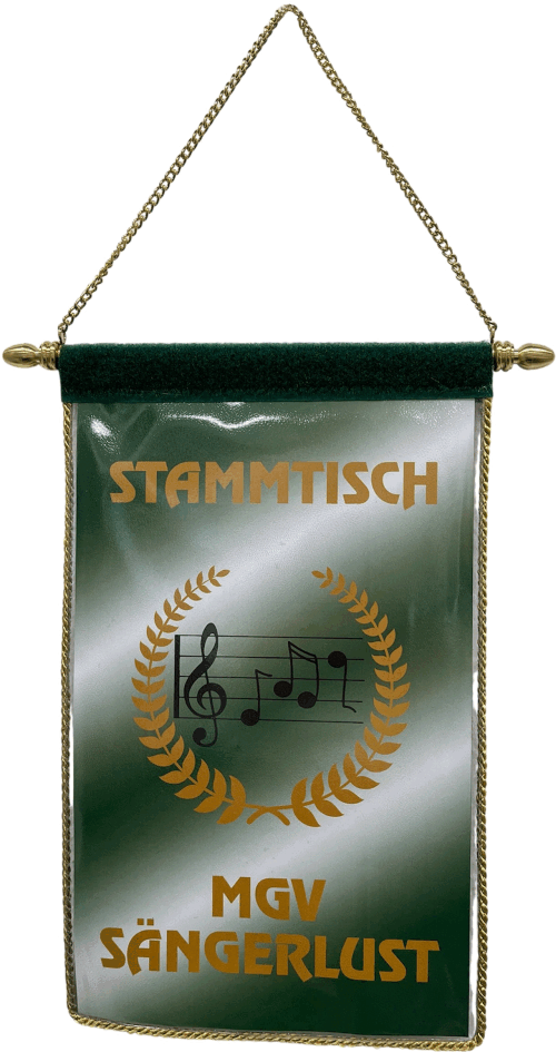 auf 100g Papier bedruckt. (Vorder- und Rückseite können auch - ohne Mehrkosten - unterschiedlich sein). Die Wimpel sind in einer wasserabweisenden Folie eingenäht. Das Abschlussband oben quer ist aus Velour oder Flausch. Bei der Aufhängung können sie zwischen einer ø3mm Kordel oder einer ø5mm Kette wählen, bei der Umnähung der Wimpel zwischen einer ø3mm Kordel oder einer 30mm Franse (hier eine Übersicht unserer wählbaren